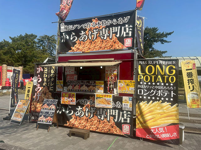讃岐肉まんコロッケ、コロッケサンド各種 、具たっぷりカレーパン、アクアポテト、チュロス、ポップコーン、果肉スカッシュ、スムージーシェィク、マンゴーラッシー、生搾りレモンスカッシュ、カキ三アイスコーヒー、ソフトクリーム、宝石のカキ氷